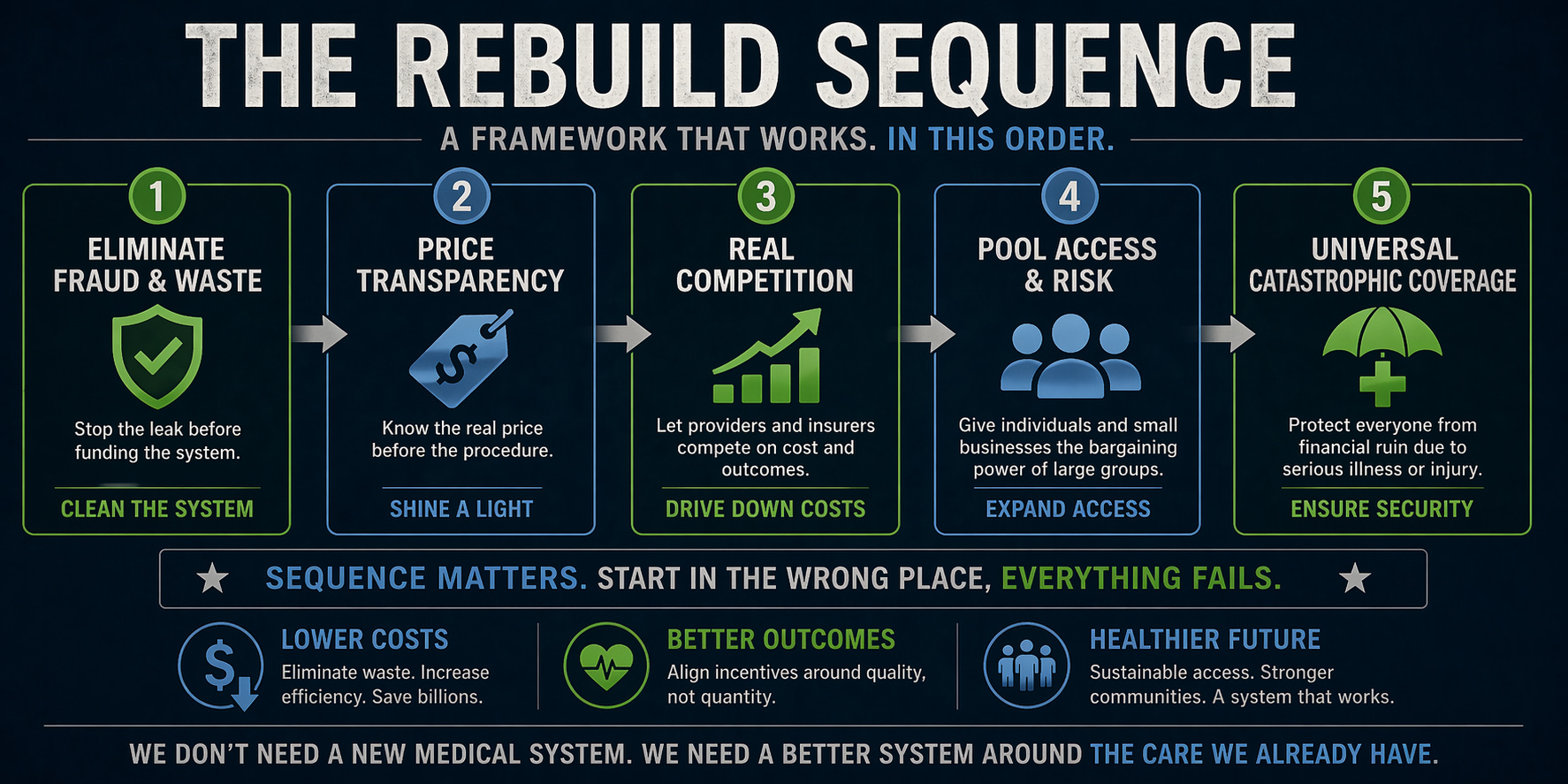You cannot fix premiums in a system that is bleeding this much money in fraud. You cannot fund universal anything in a system that cannot tell which claims are real. You cannot have market competition in a system where fake companies bill for services that never happened and collect real money before anyone notices.